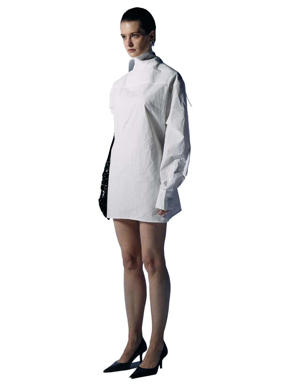 White Long Collar Oversize Strap Shirt Onepiece