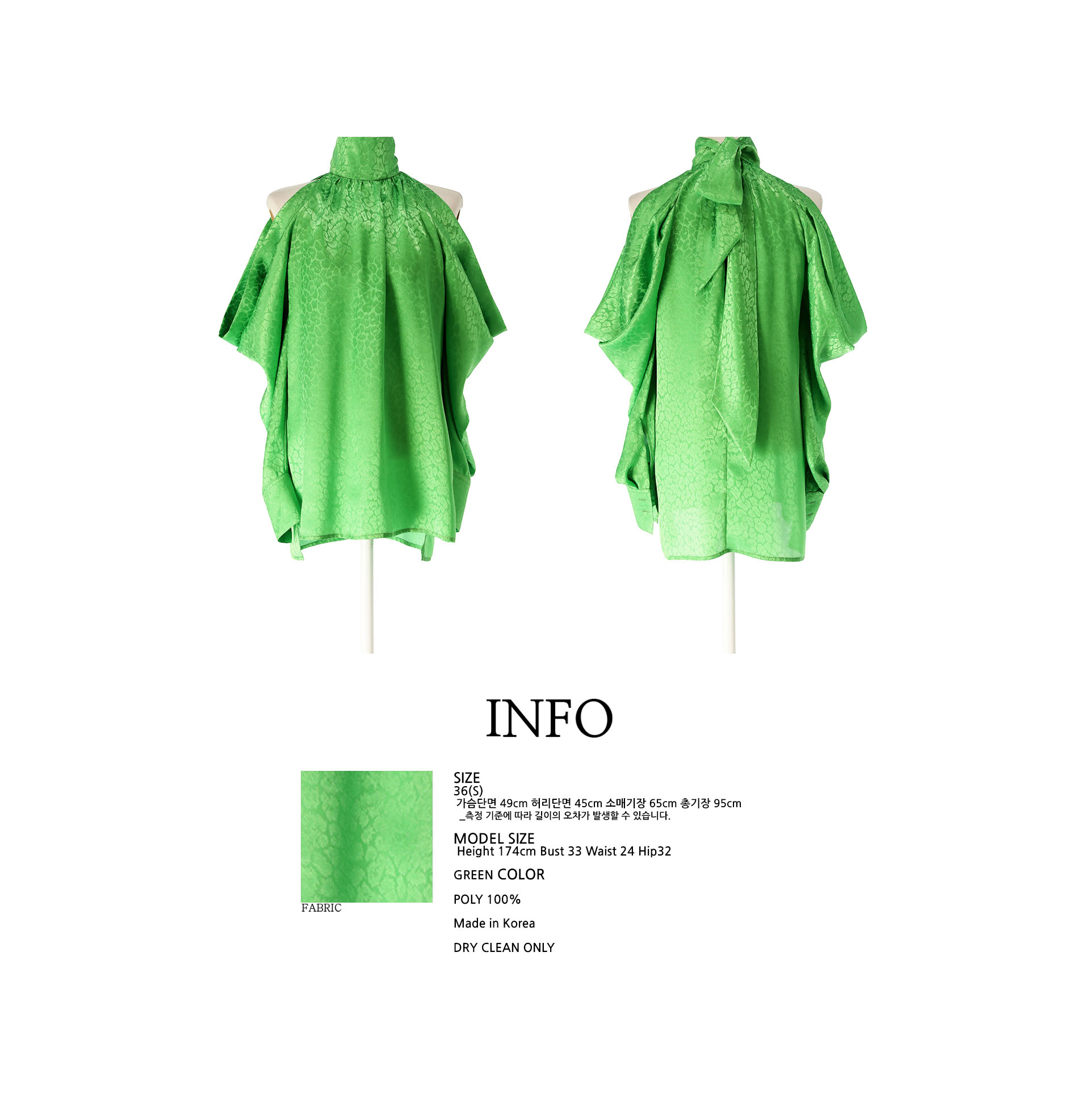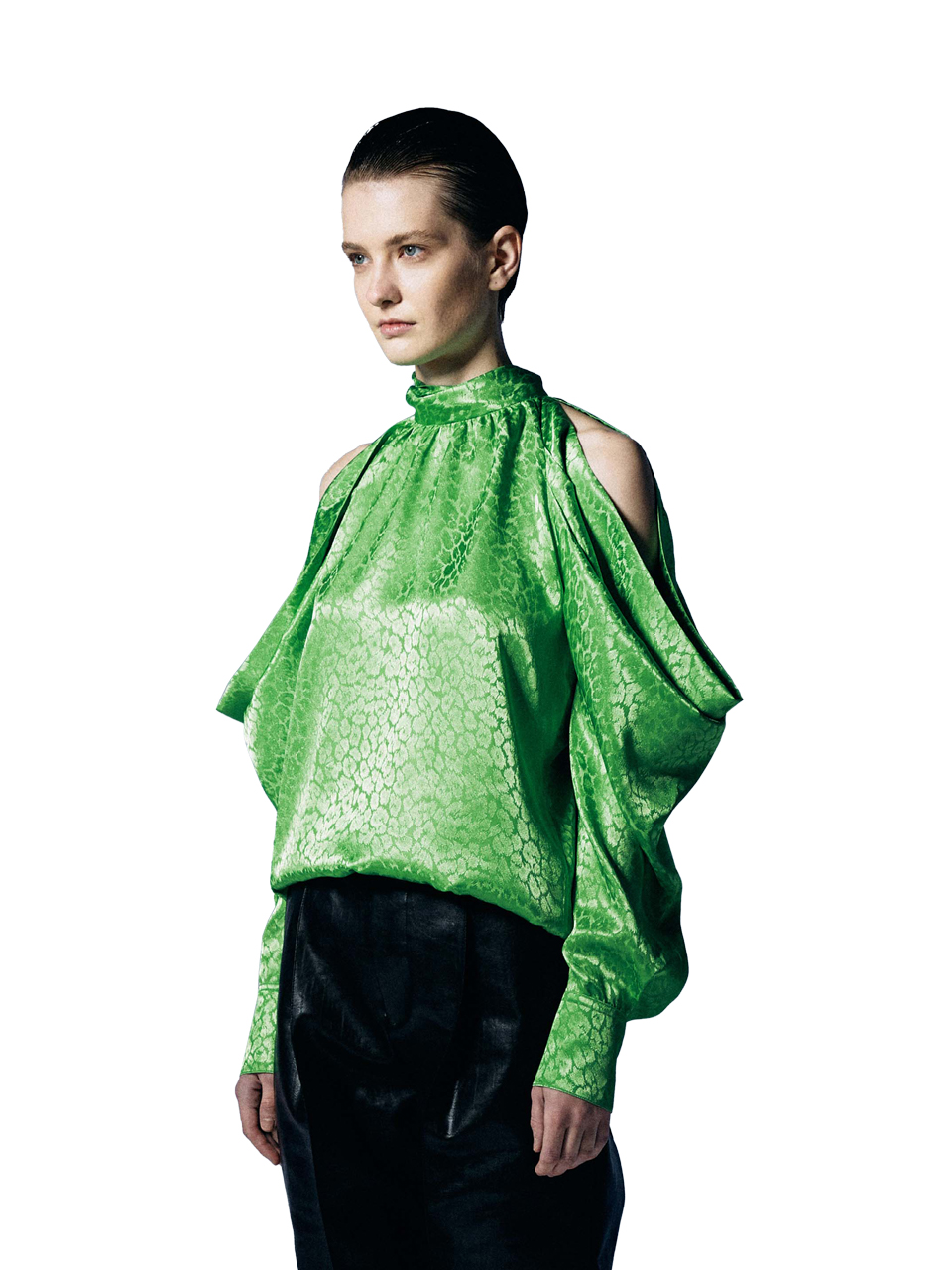 Green Off-Shoulder Puffed Scarf Blouse